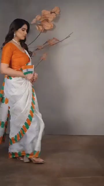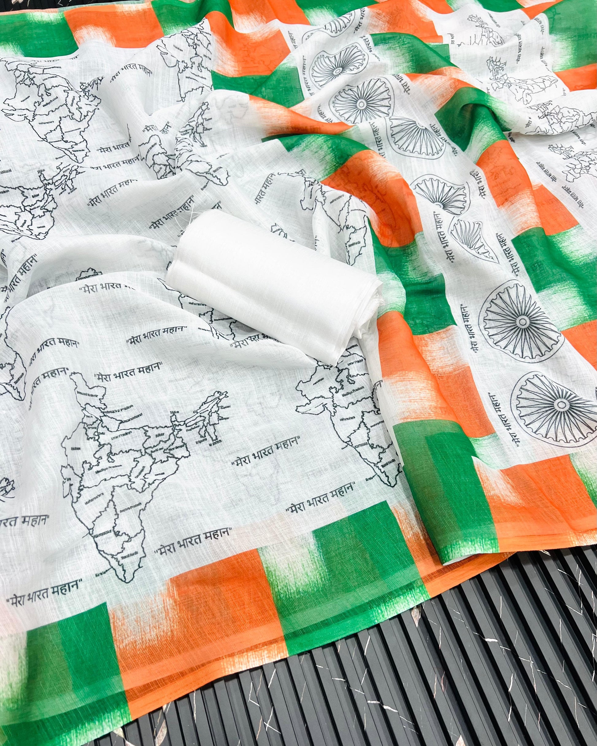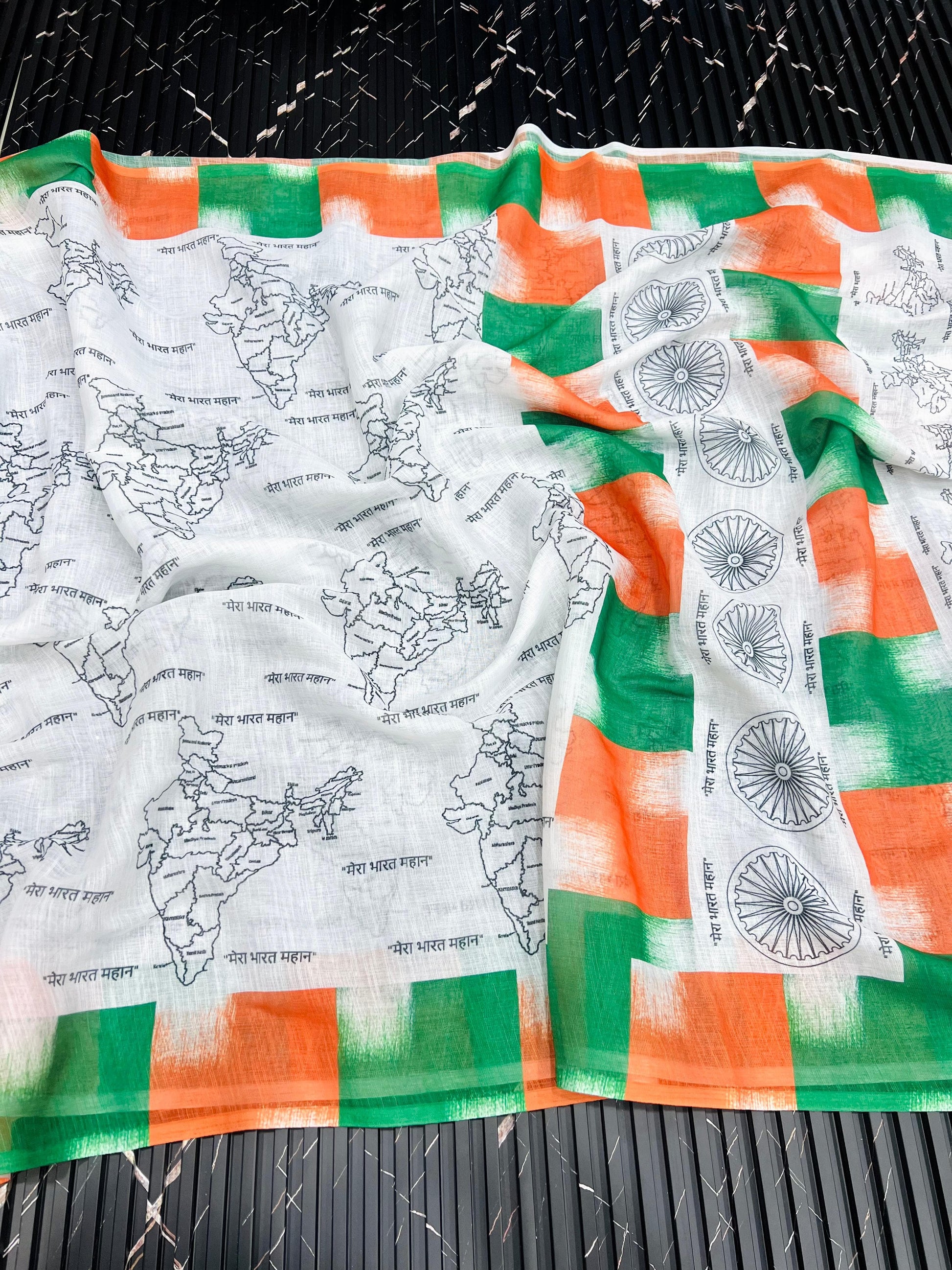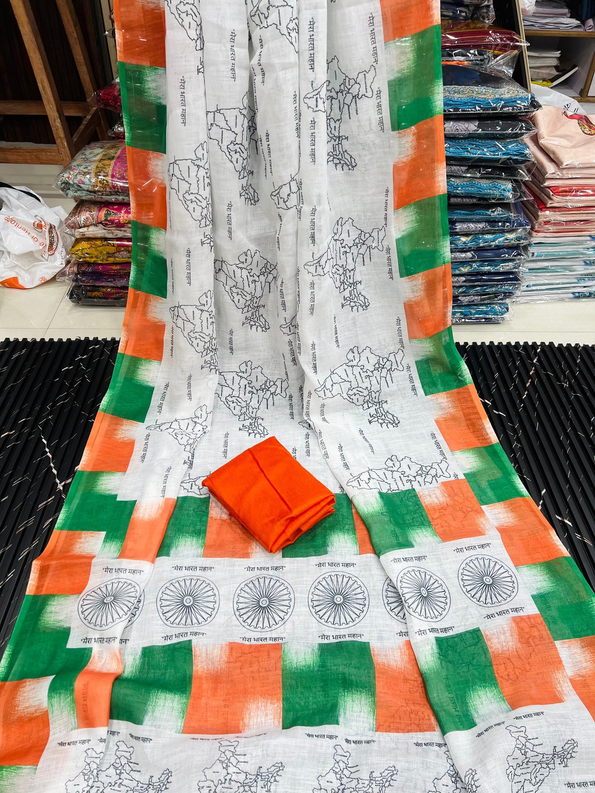Tiranga Edition Linen Cotton Saree with HD Print & Mono Silk Blouse