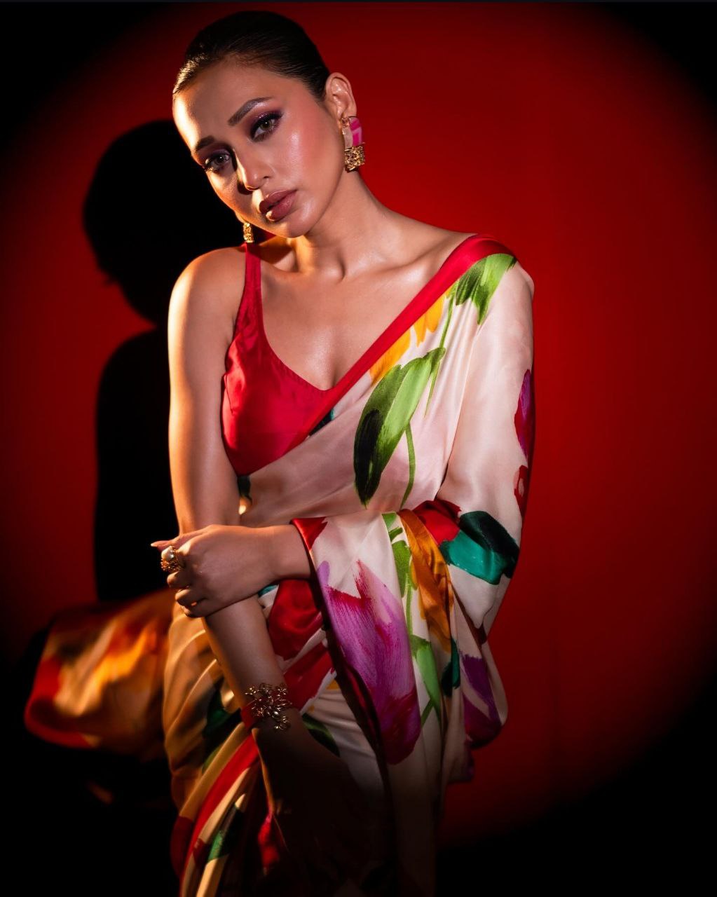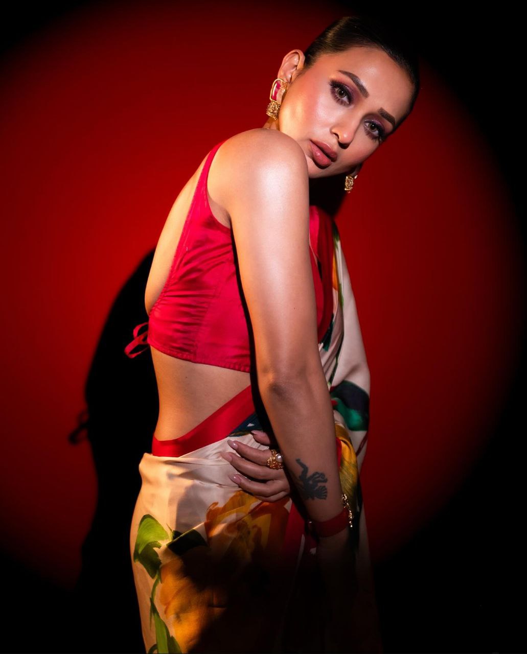 White Floral Printed Satin Silk Saree with Pink Border Digital Print Original Japan Satin (Devsena satin)